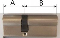 Sie benötigen die Längen A und B für Doppelzylinder, bzw. die Länge A für Halbzylinder. Die Länge A steht immer für die Außenseite des Profilzylinders und die Länge B für die Innenseite des Profilzylinders